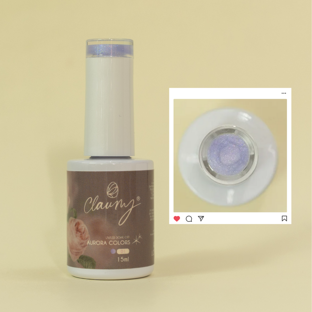 El Aurora Colors Nº 01 – Lavanda Boreal es un esmalte que envuelve las uñas en un halo de luz violeta con destellos iridiscentes. Su transparencia sutil y microbrillos tornasolados lo convierten en el aliado perfecto para dar un toque elegante y etéreo a cualquier diseño, sin sobrecargar el acabado.
