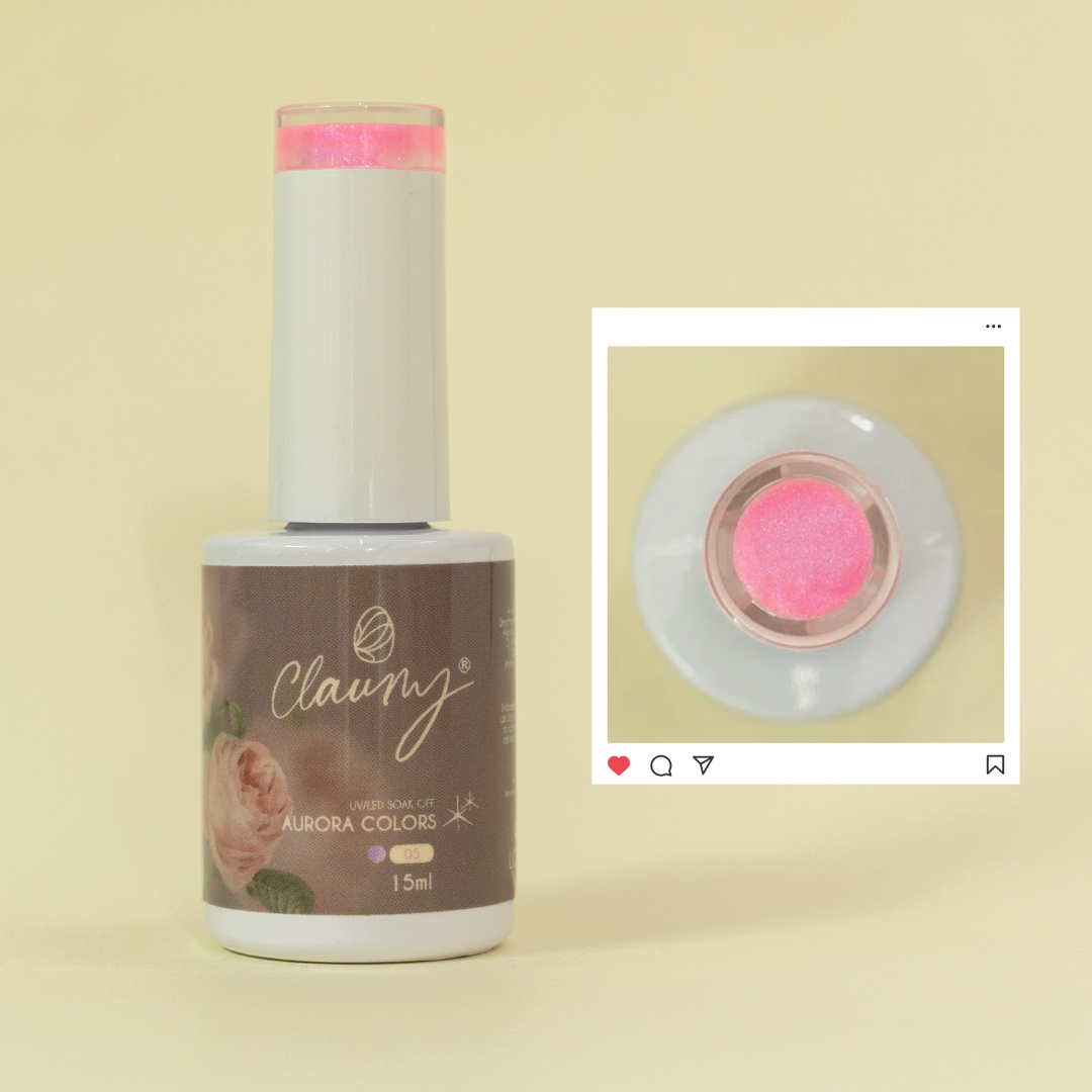 Efecto Aurora luminoso: rosa neón con destellos iridiscentes para un acabado impactante.