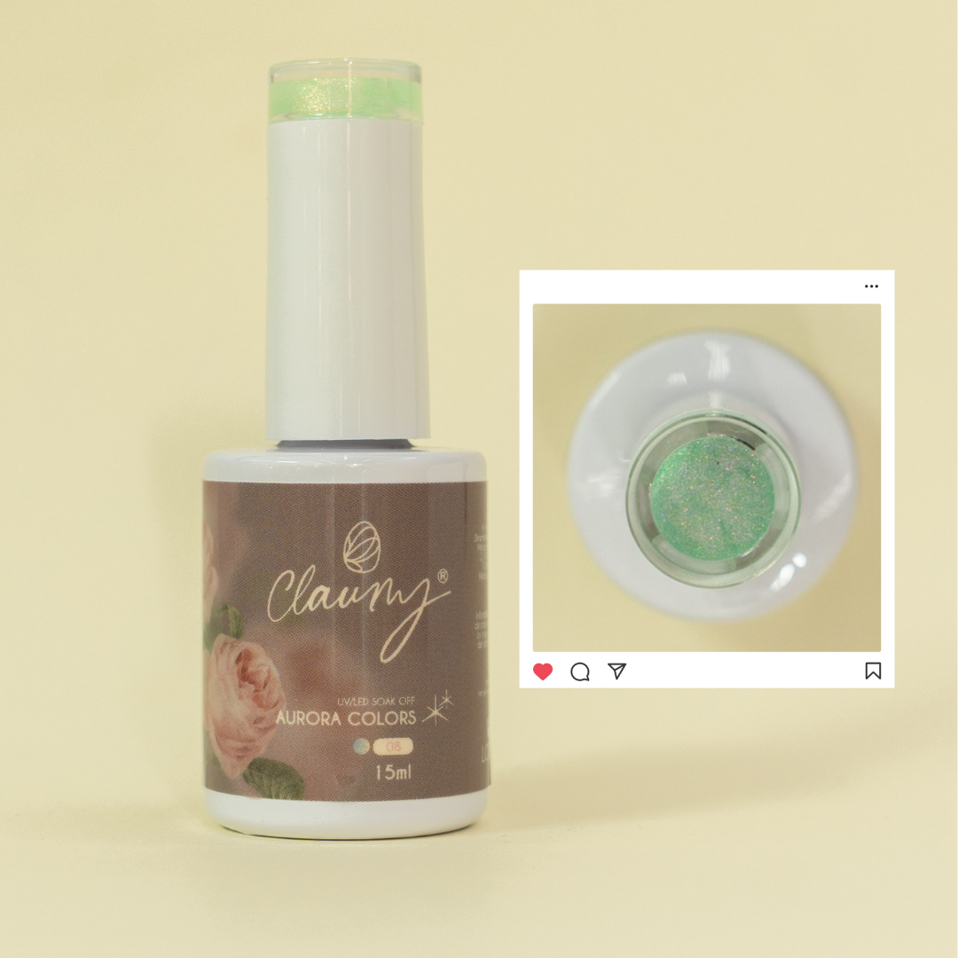 El Aurora Colors Nº 08 – Lime Spark es un verde lima fresco con destellos holográficos que reflejan la luz en un espectáculo de colores. Una opción atrevida para quienes aman salirse de lo convencional.