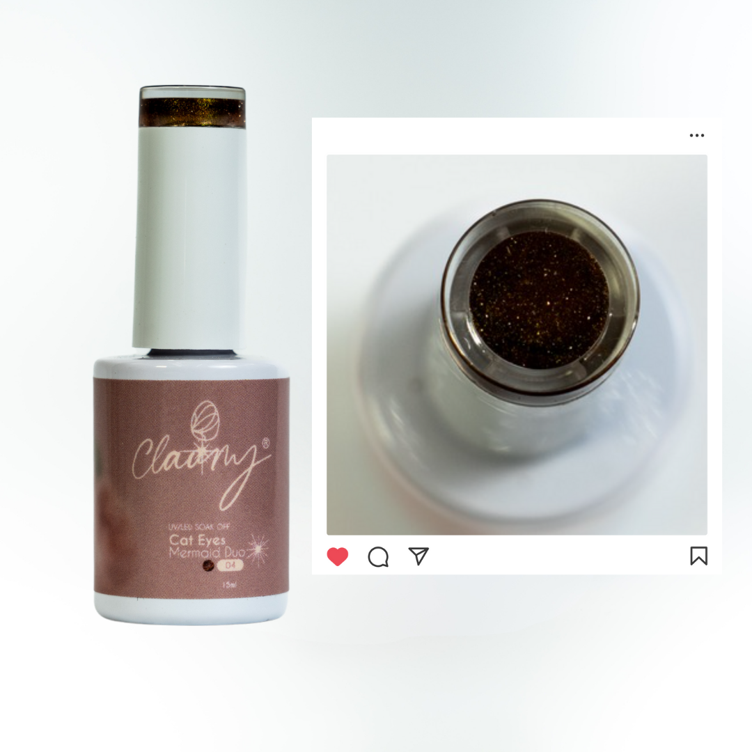 Descubre el poder del magnetismo con la nueva colección Cat Eyes Mermaid Duo de Claumy. Diez tonos intensos con acabados dúo cromo que cambian con la luz y el movimiento, generando un efecto “ojo de gato” profundo y mágico. Esta línea de esmaltes semipermanentes ha sido creada para quienes buscan un diseño llamativo, elegante y en tendencia.