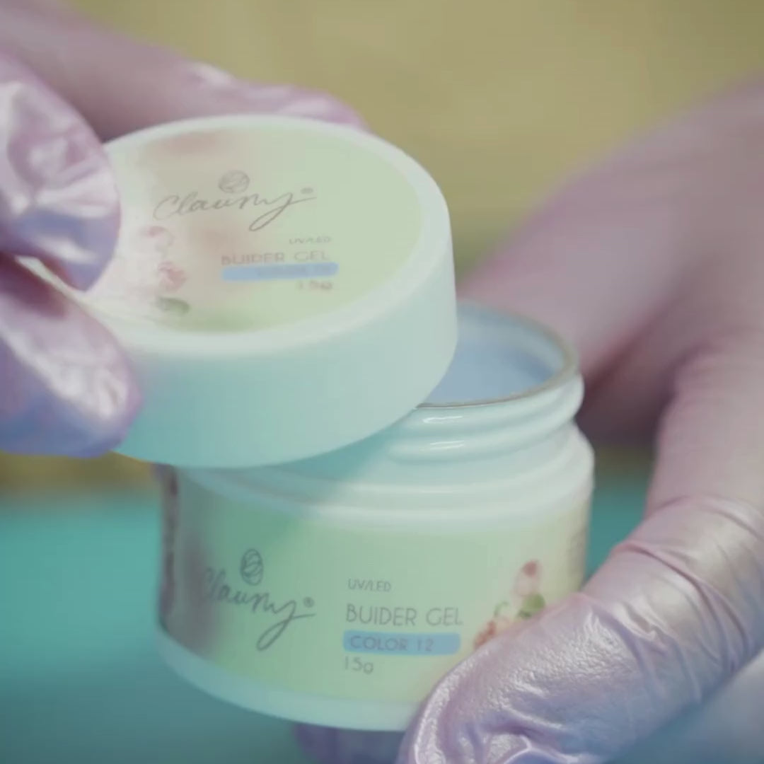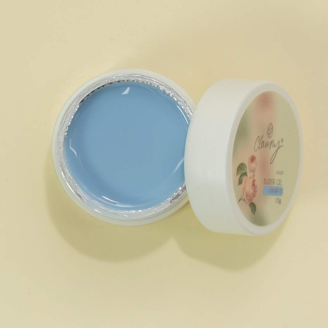 El Gel Builder Claumy Nº 12 – Azul Serenity es un constructor profesional con un tono azul suave, elegante y versátil que transmite calma y sofisticación. Su pigmentación de cobertura total asegura un color uniforme y perfecto desde la primera capa, ideal para clientas que buscan un acabado delicado pero con presencia.