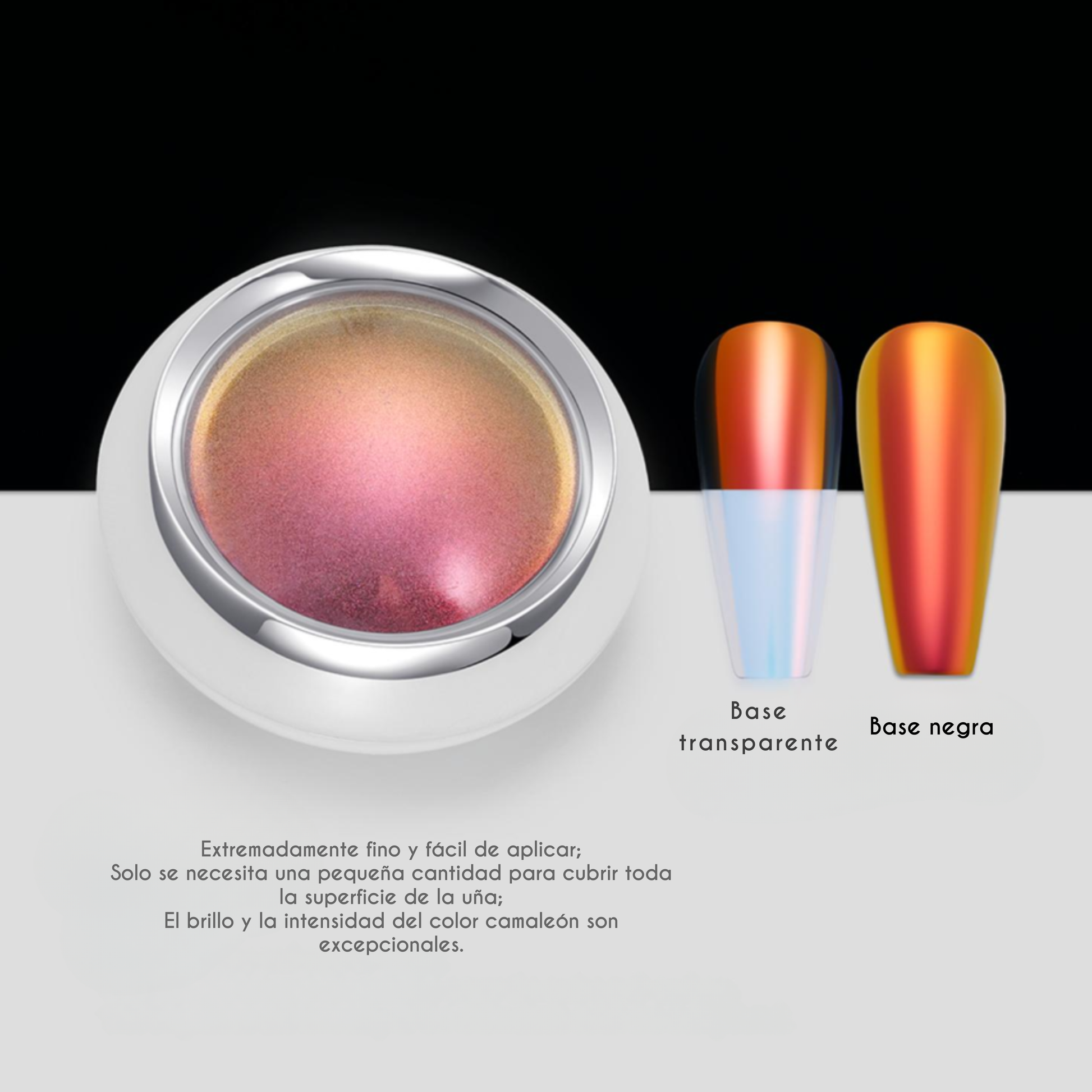 El Aurora Chameleon AP0503 es el pigmento perfecto para quienes aman los reflejos cálidos con un toque romántico. Su mezcla camaleónica entre rosas intensos, dorados suaves y destellos cálidos crea un efecto visual profundo, elegante y muy llamativo, ideal para elevar cualquier manicura profesional.