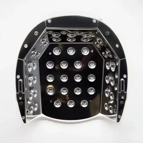 El interior de acero inoxidable y su superficie reflectante garantizan una distribución uniforme de la luz, optimizando cada sesión de secado.