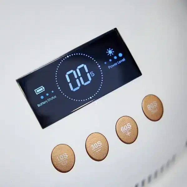 Controla cada sesión con facilidad gracias a su pantalla LED táctil, que permite elegir entre 4 programas de secado: 10s, 30s, 60s y 90s.