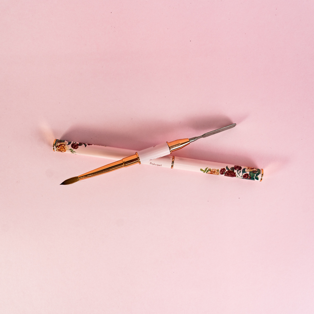 🔸 Limpieza: Limpia con solución de Polygel o alcohol para mantener las cerdas flexibles y en buen estado. Esta limpieza adecuada prolonga la vida útil del pincel y asegura su rendimiento óptimo.